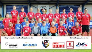 Vordere Reihe von links: Volker (Trainer E2), Ilian, Charlie, Pepe, Leon S., Luca, Manuel W. (Trainer E1)